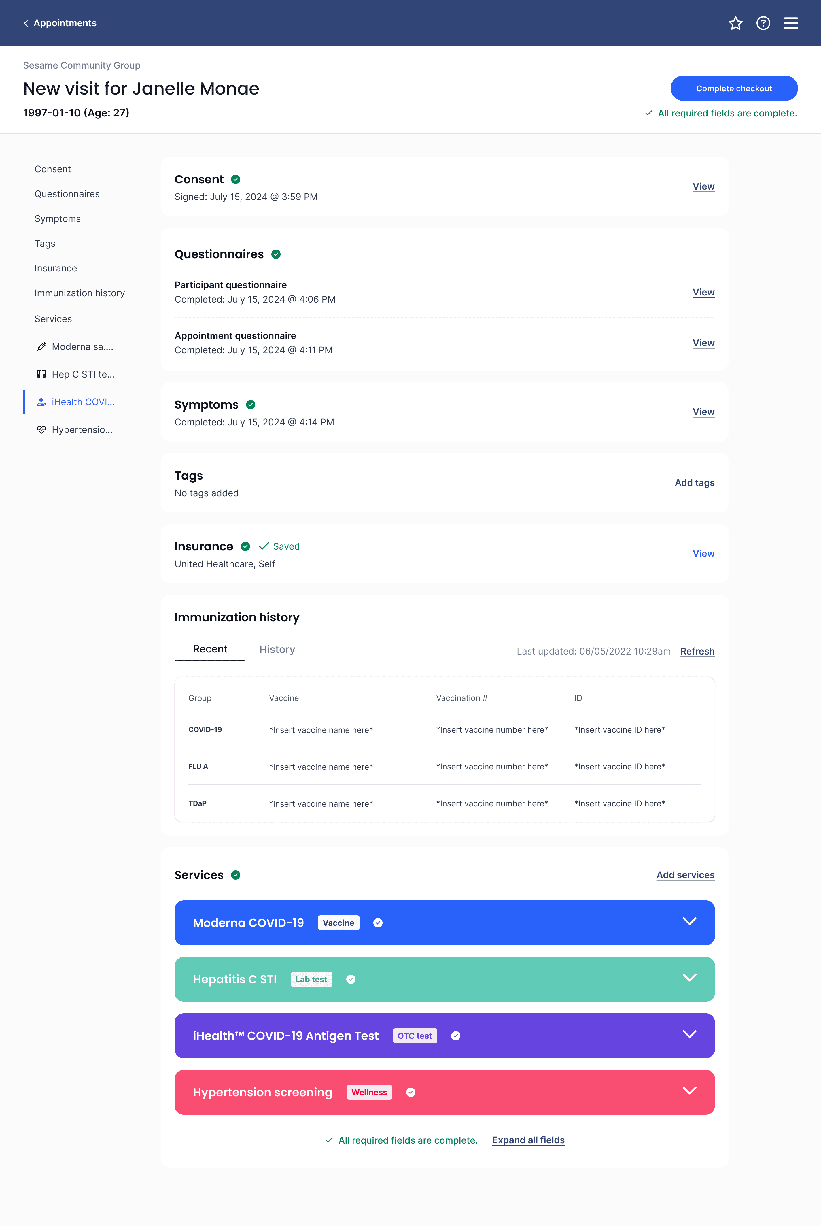 Improving efficiency and simplifying patient checkout flows for medical professionals working in a community clinic environment.